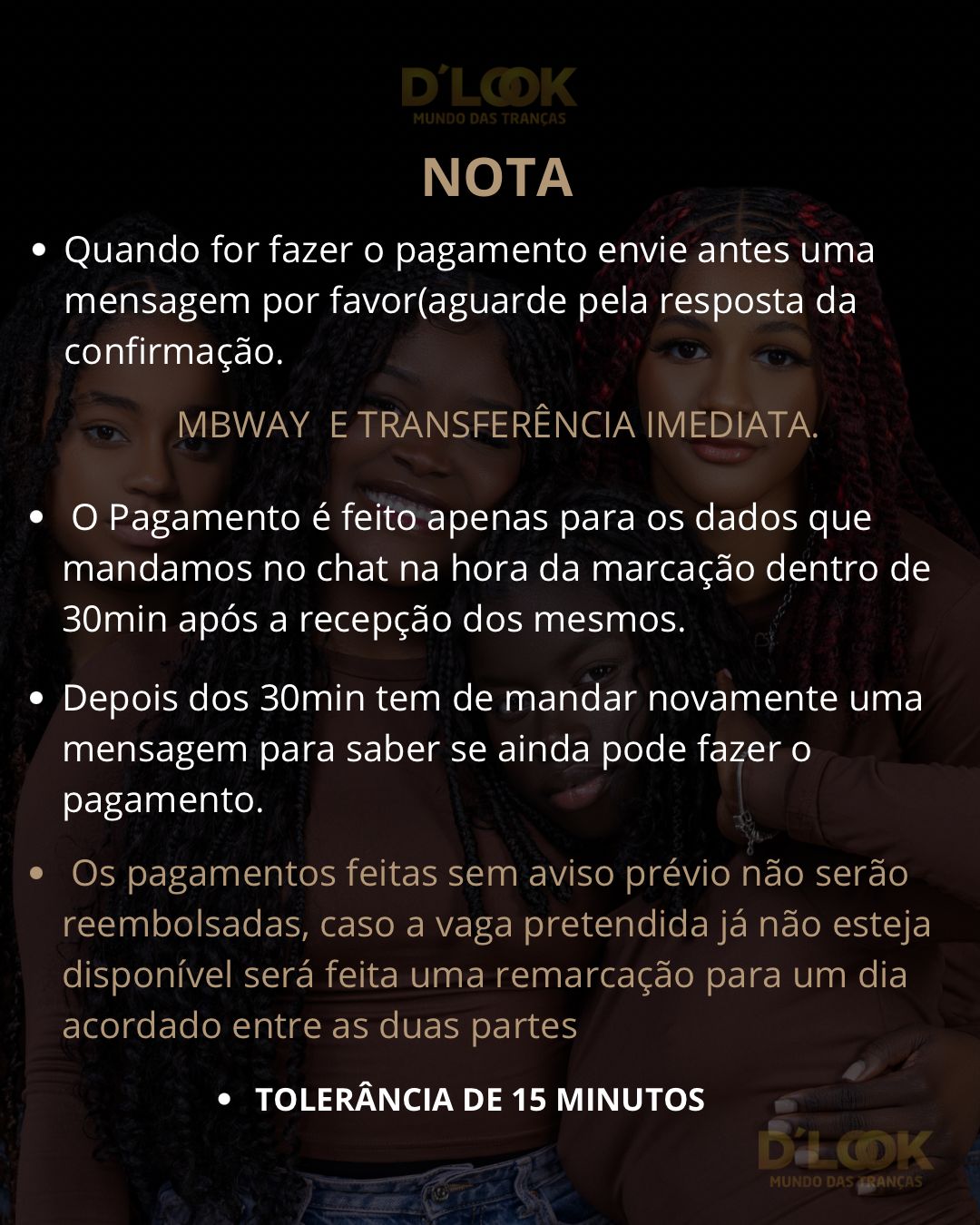 O meu compromisso é oferecer um serviço de excelência — cuido dos detalhes, da durabilidade, do conforto e da adaptação ao estilo de quem me procura. No meu portfólio vais encontrar trabalhos elaborados, com atenção personalizada, e muitos estilos únicos criados a partir das raízes africanas.